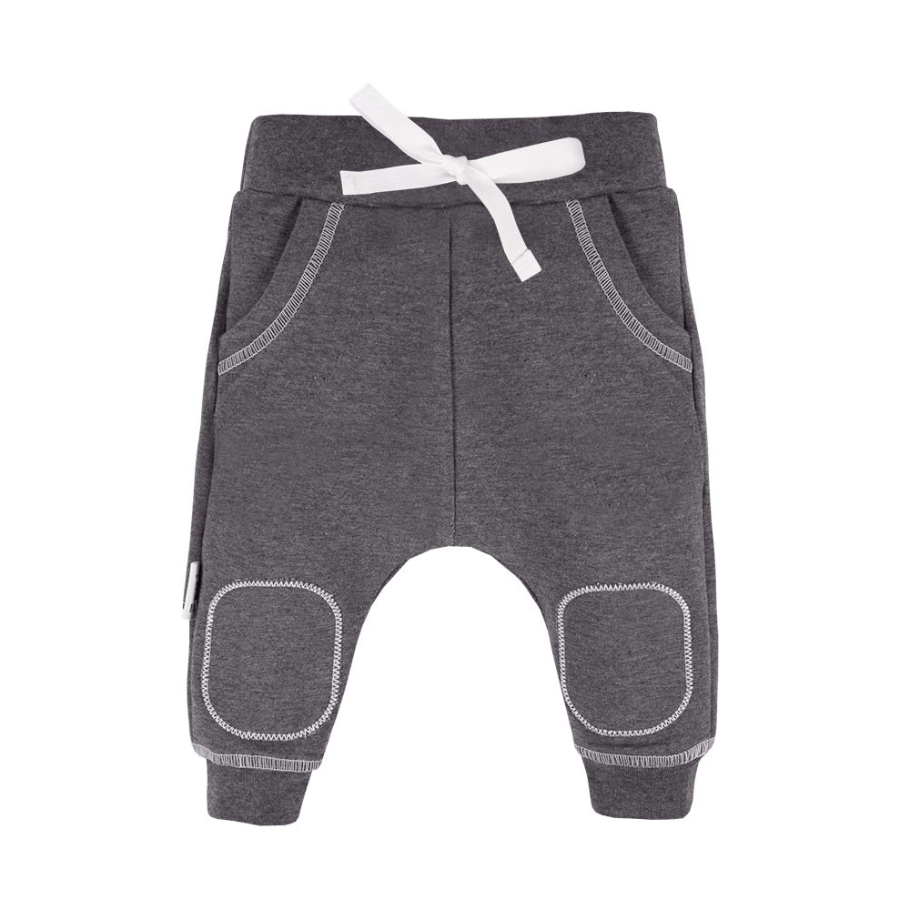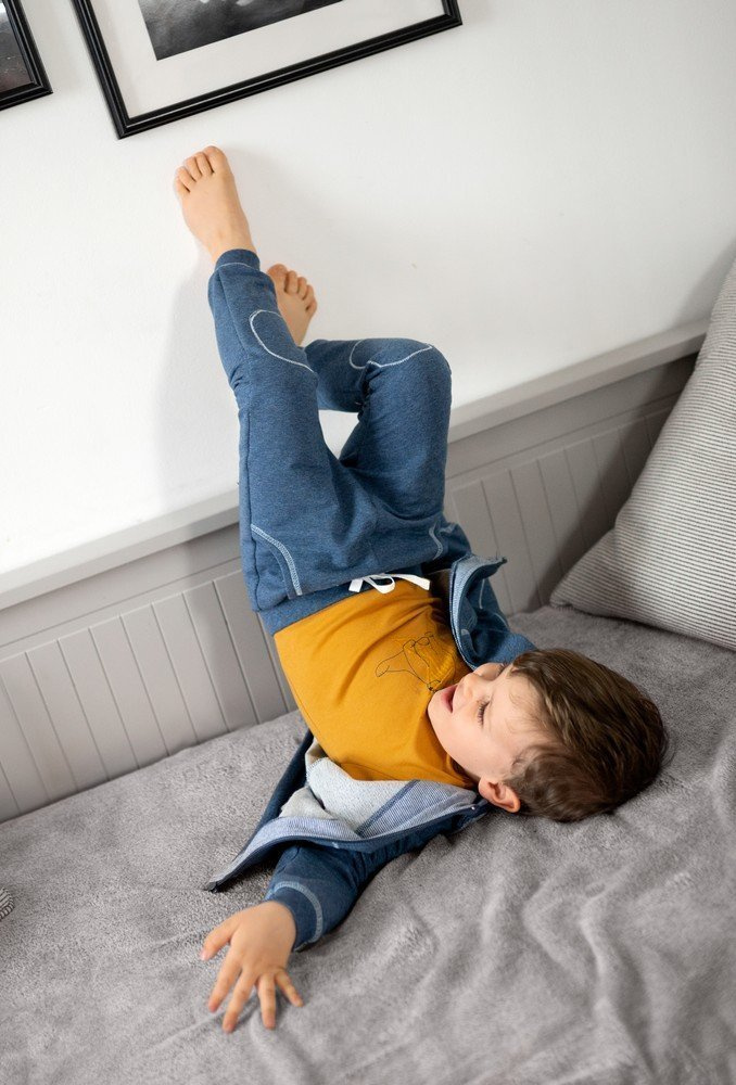 Spodnie uszyte z miękkiej i przyjemnej w dotyku dzianiny bawełnianej.