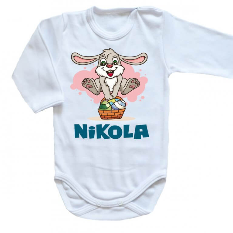 "Wielkanoc zajączek z koszyczkiem z imieniem" Moocha body długi rękaw biały