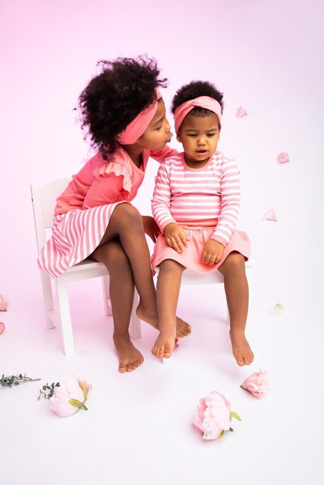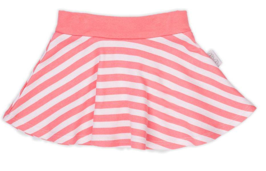 Wygodna, spódniczka w koralowym kolorze. Ozdobiona naszywką.