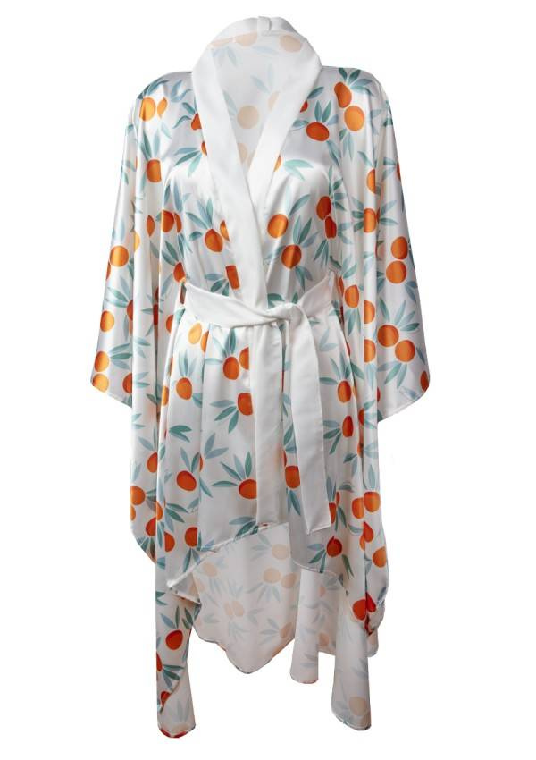 Szlafrok wykonany jest z przyjemnej w noszeniu, jak i dotyku satyny.