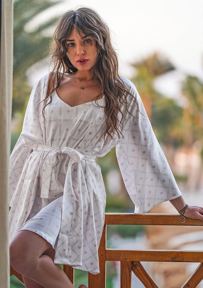 Podomka DK wykonana jest z przyjemnego satynowego materiału. Po założeniu szlafroczka, trudno będzie się z nim później rozstać. Podomka uszyta jest według klasycznego wzoru - sięga przed kolana oraz posiada długie, luźne rękawki. Szlafroczek przewiązywany jest cienkim paskiem, dzięki któremu każda kobieta może podkreślić swoją talię, a przy okazji podkreślić swoje kształty.