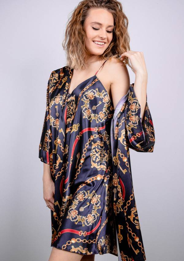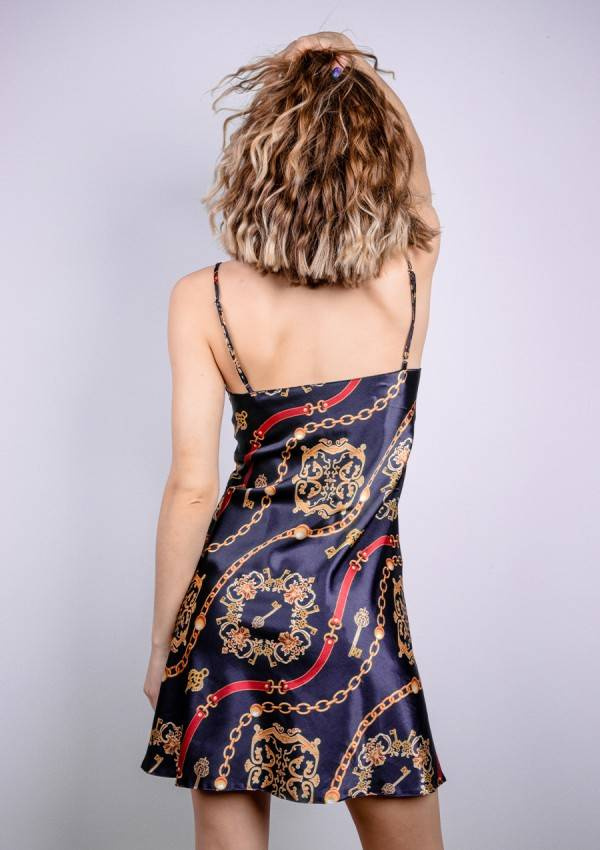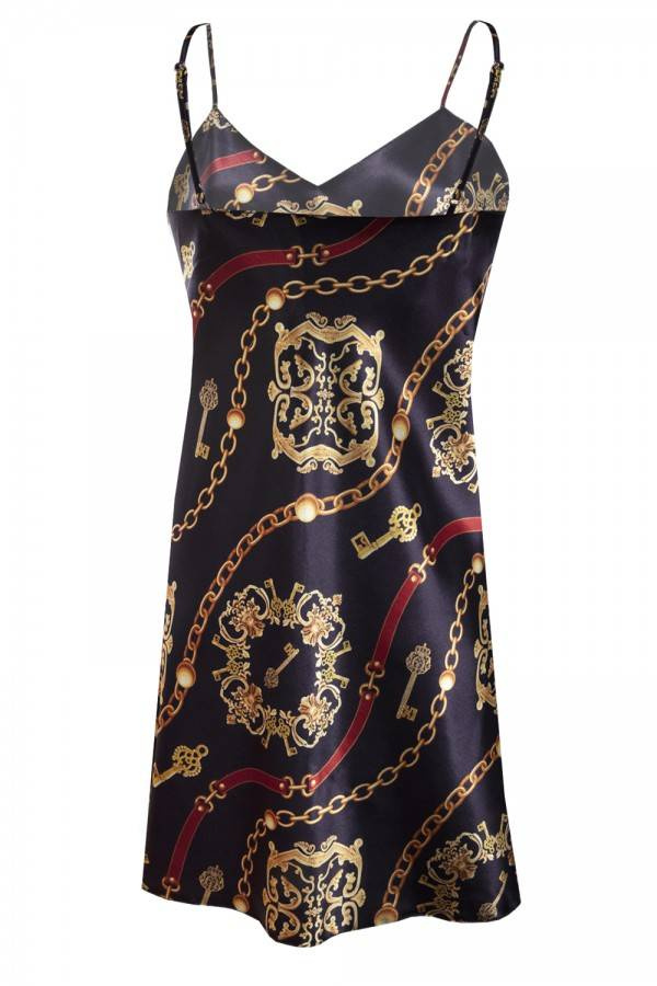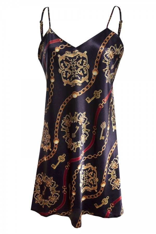 DK-HK Christmas Satynowa halka, wąskie ramiączko DKaren - czarny 014