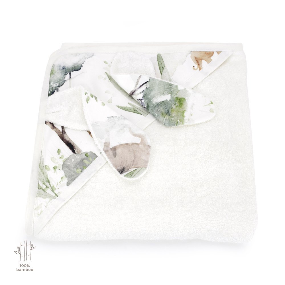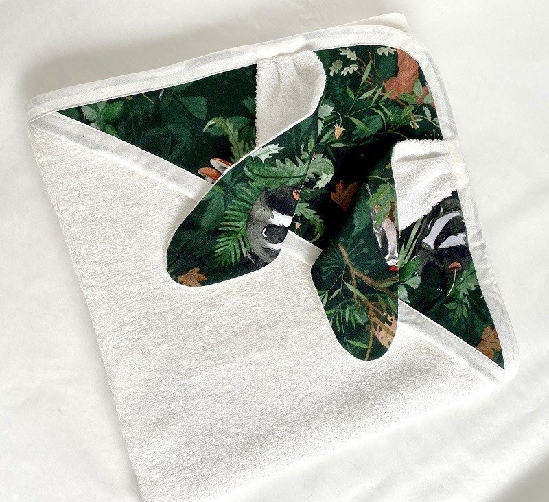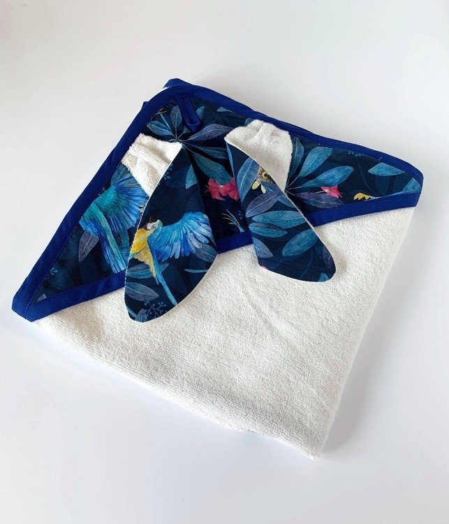 Sprawdzi się również na basenie, czy na plaży, otuli i ogrzeje delikatną skórę dziecka. Posiada praktyczny kapturek ze wzorem kolekcji, na kapturku przesłodkie uszka, a cały jest obszyty elegancką lamówką. W górnym rogu ręczniczek ma troczek ułatwiający zawieszenie.