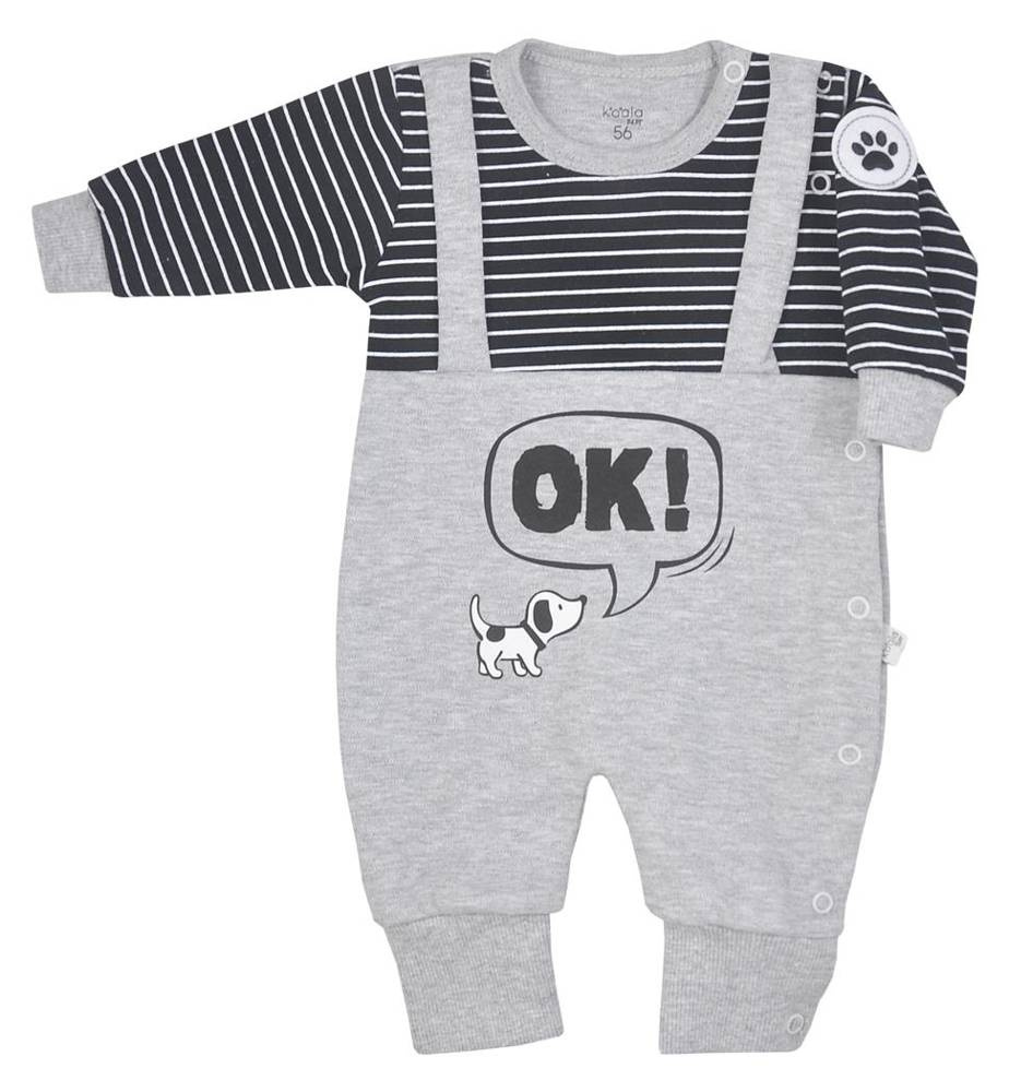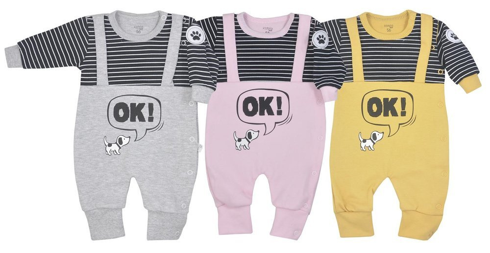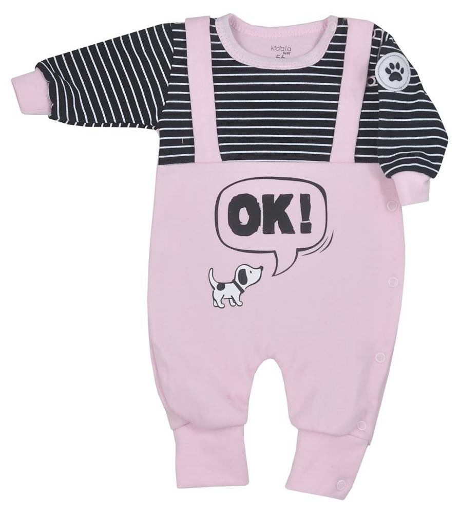 Bawełniany pajacyk niemowlęcy rozpinany na całej długości na napki- co ułatwia przewijanie dziecka.