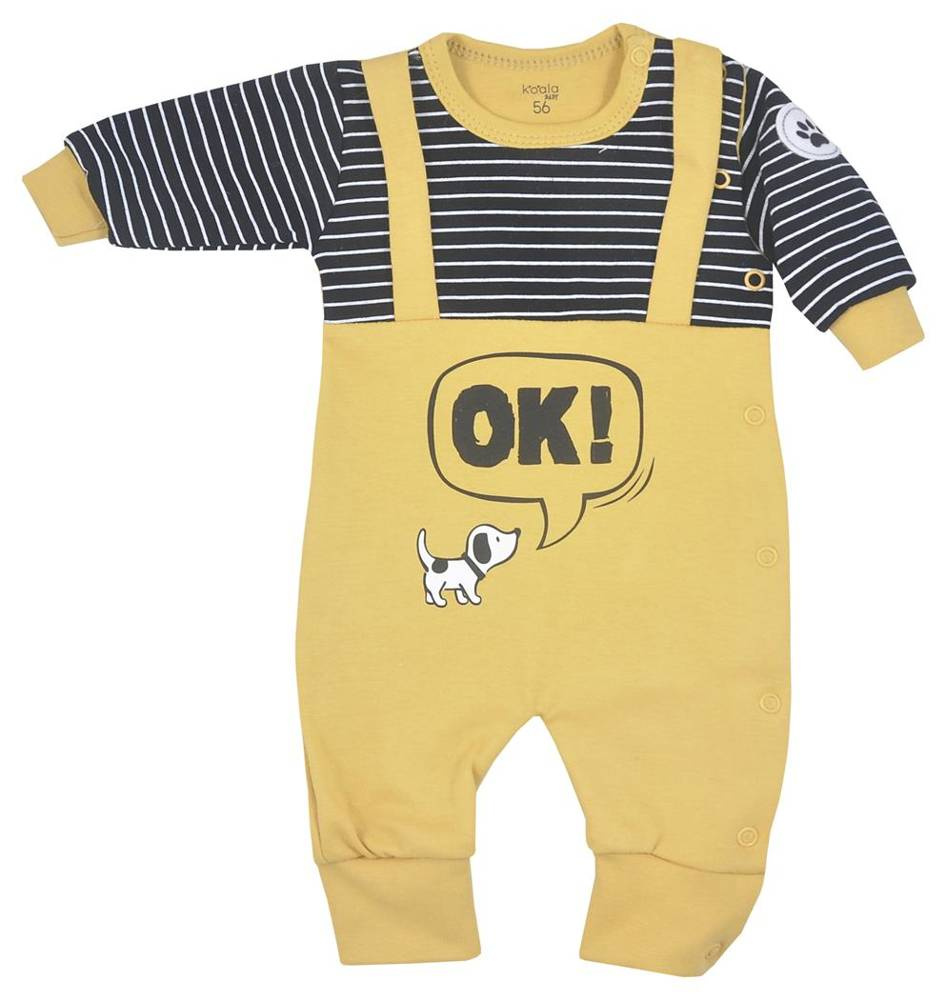 Bawełniany pajacyk niemowlęcy rozpinany na całej długości na napki- co ułatwia przewijanie dziecka.