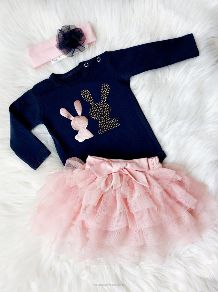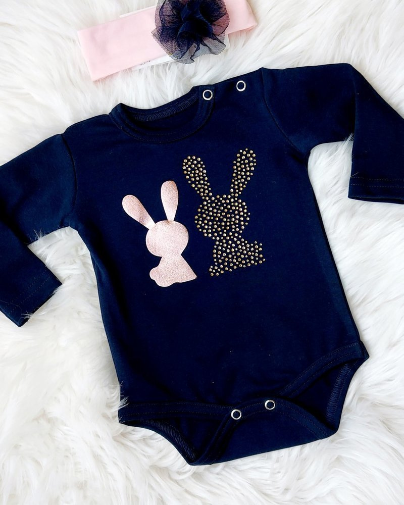 Króliczki Bambarillo Body z długim rękawem granatowy