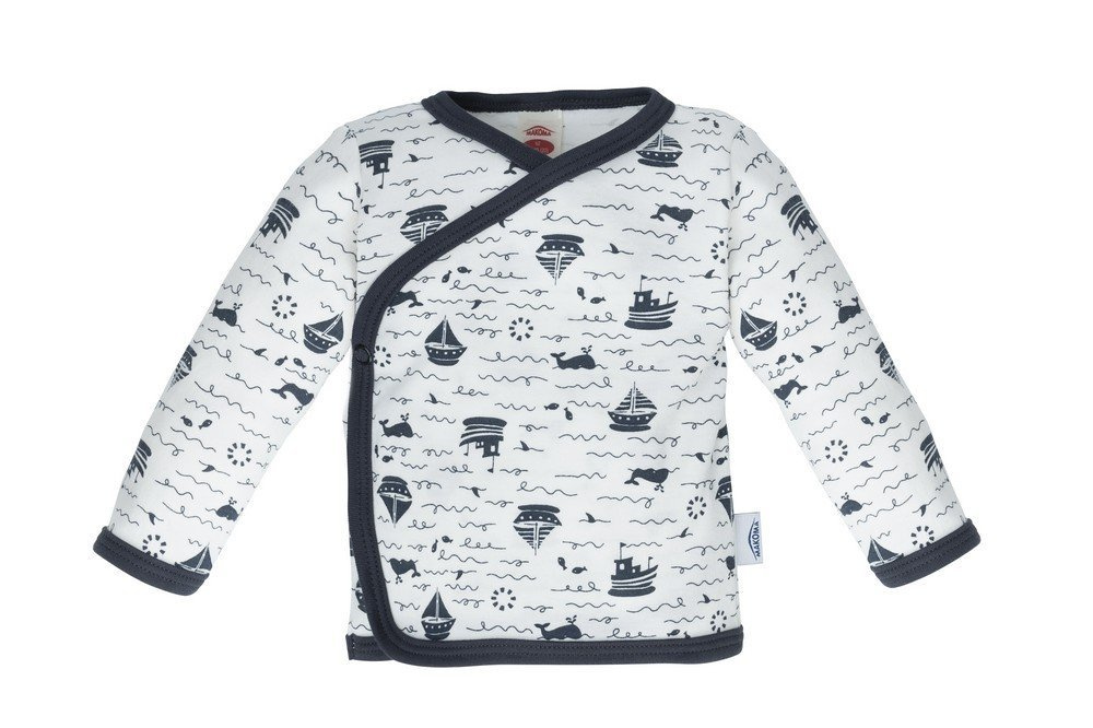 Wykonany ze 100% bawełny. Kopertowy krój ułatwia początkującym rodzicom ubieranie i rozbieranie malca. Do produkcji zatrzasków użyto antyalergicznego, bezniklowego tworzywa.