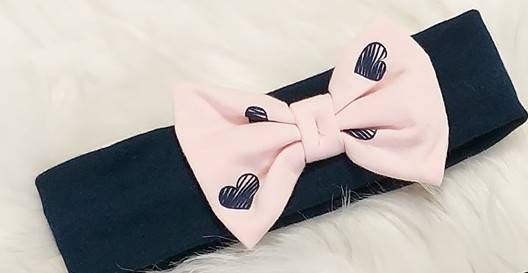 Serduszka Bambarillo opaska z kokardką granatowo-różowy