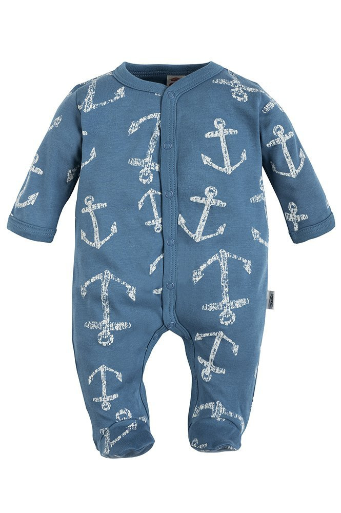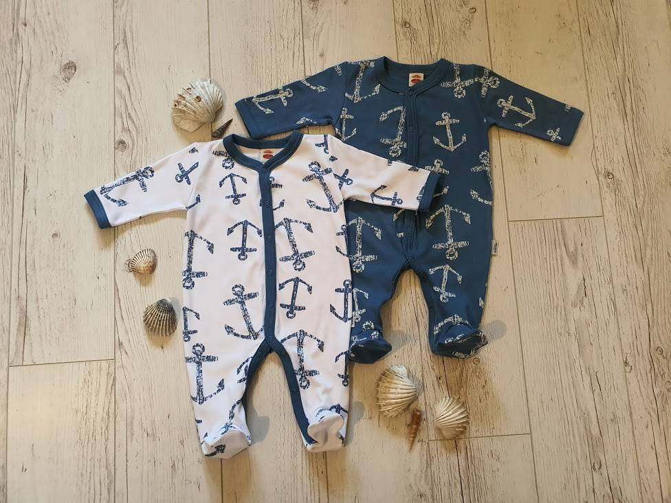 Pajac w kotwice. Rozpinany na całej długości, co umożliwia łatwe i szybkie ubieranie dziecka. Zapewnia swobodę użytkowania i nie krepuje ruchów dziecka. Dostępny w rozmiarach 56-80. Uszyty z wysokiej jakości materiały bawełnianego.