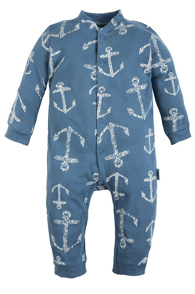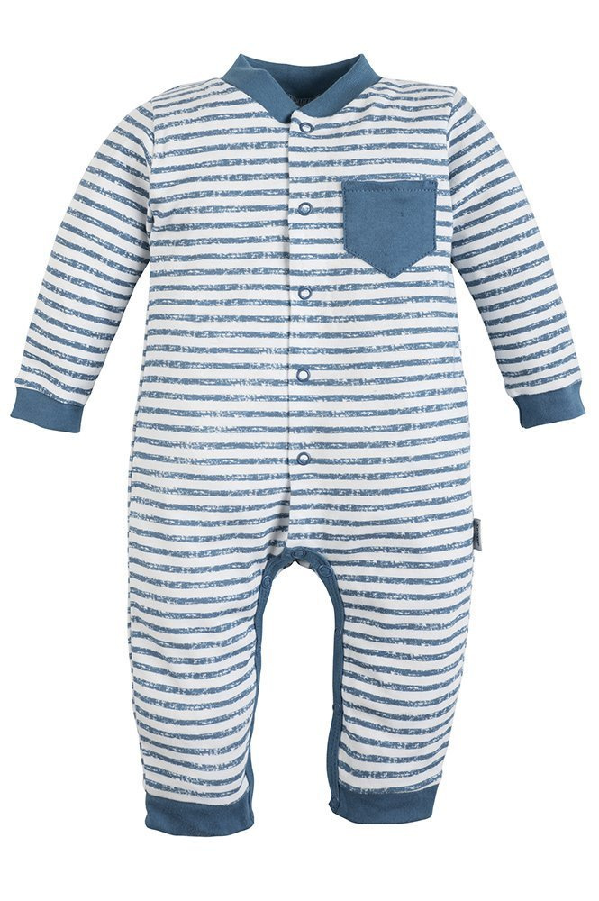 Wygodny pajac z wysokiej jakości bawełny w kolorze białym w uroczy wzór pasków i kotwicy. Rozpinany na całej długości, co umożliwia łatwe i szybkie ubieranie dziecka. Zapewnia swobodę użytkowania i nie krepuje ruchów dziecka. To idealne rozwiązanie dla młodych, początkujących rodziców. Dostępny w rozmiarach 68-98. Uszyty z wysokiej jakości materiały bawełnianego.
