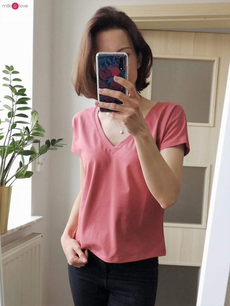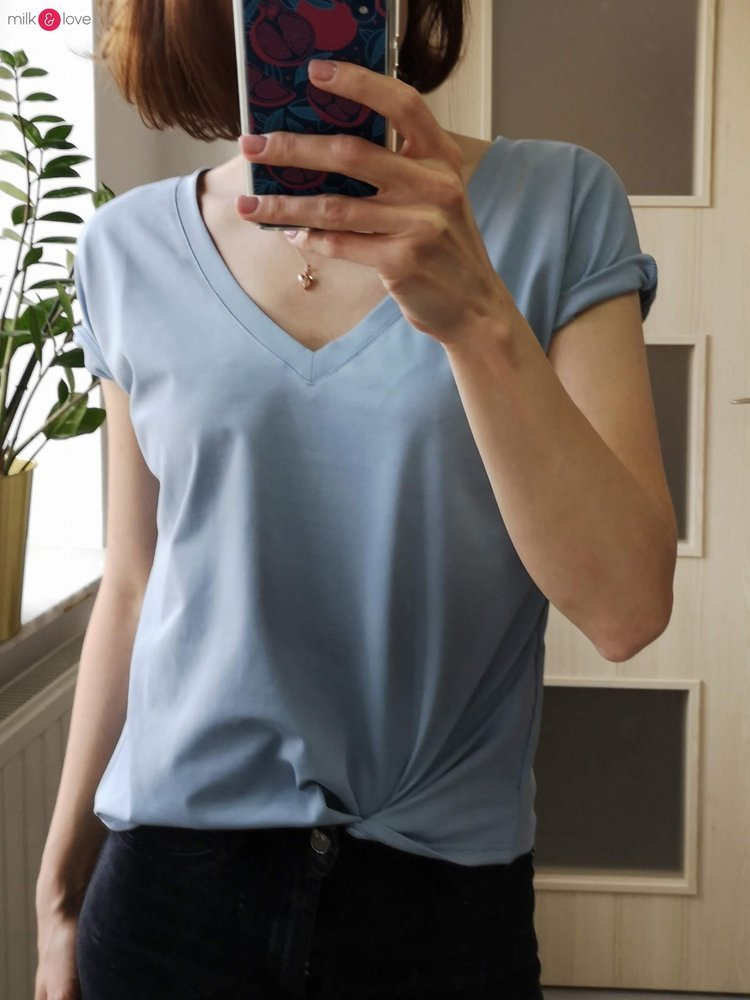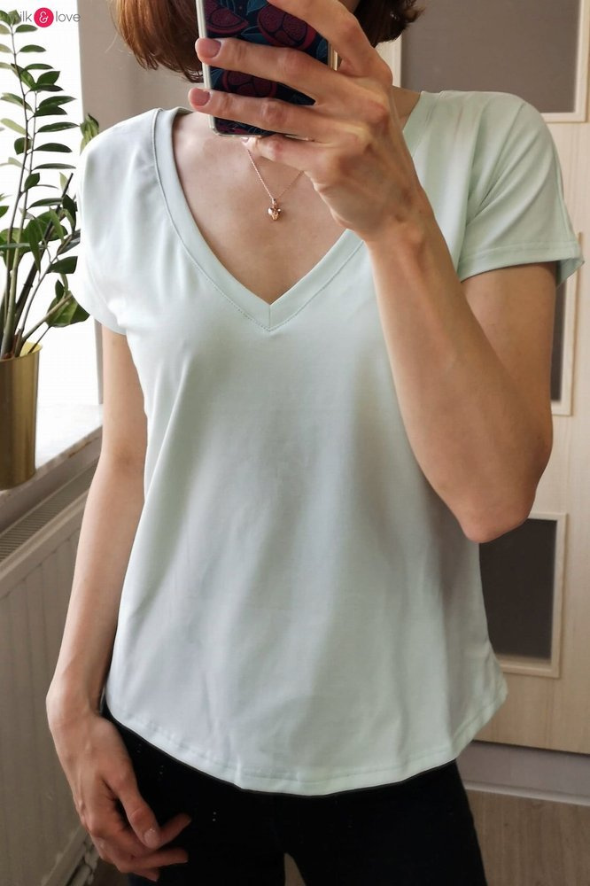 Bluzki ciążowe i do karmienia Two Ways są uszyte z elastycznej dzianiny bawełnianej, która ładnie dopasowuje się do zmieniających się kształtów ciała w i po ciąży. Wysokiej jakości włókna wiskozowe nie odkształcają się, dzięki czemu bluzka nie traci fasonu i po porodzie dalej służy jako bluzka do karmienia. Ukryte otwarcie z lekko osłaniającymi pierś zakładkami umożliwia komfortowe i dyskretnie karmienie piersią. Model bluzki 2w1 - którą możesz nosić dekoltem V-neck do przodu lub na plecach tworząc zupełnie różne stylizacje!