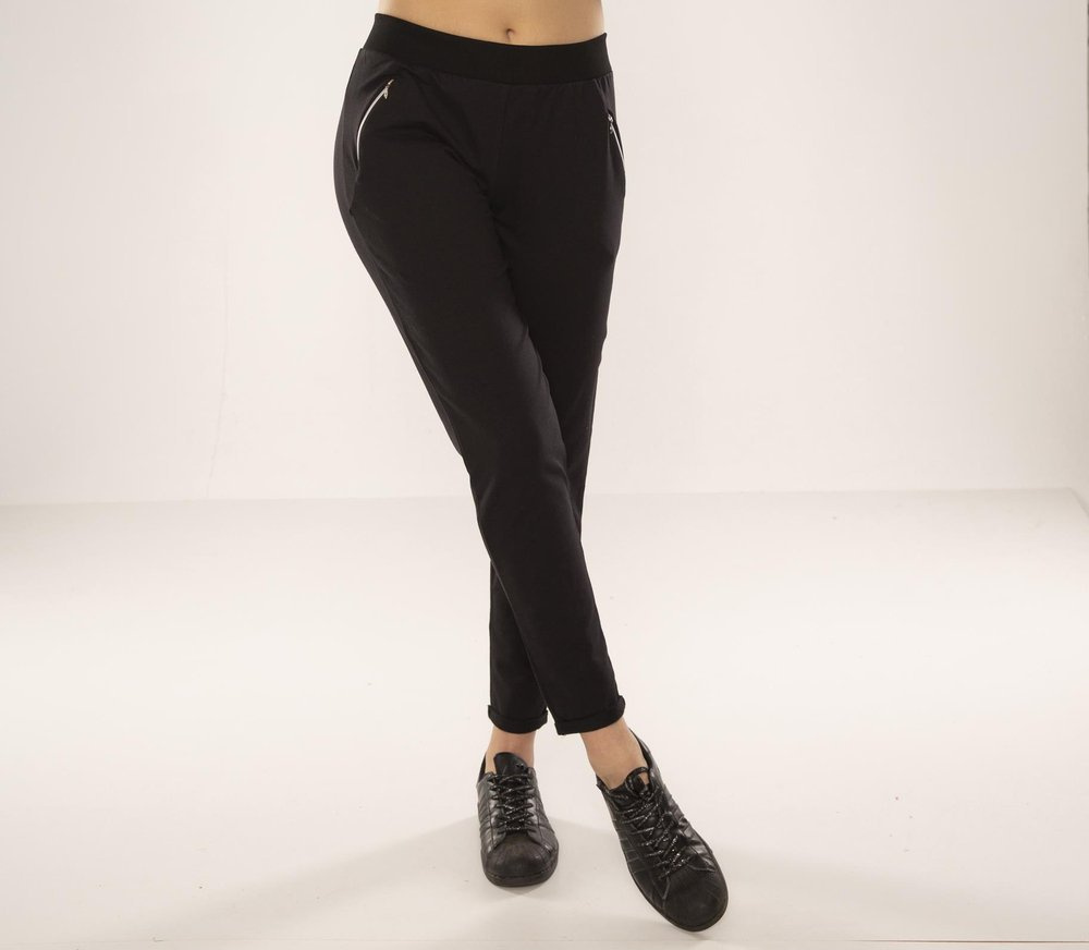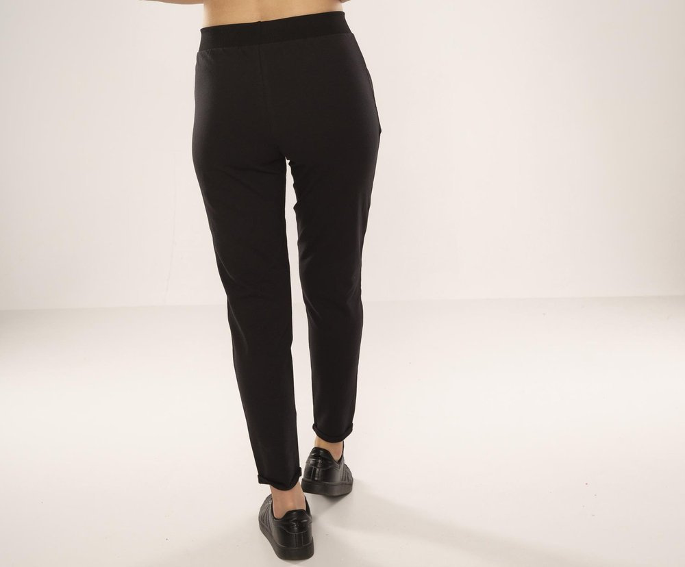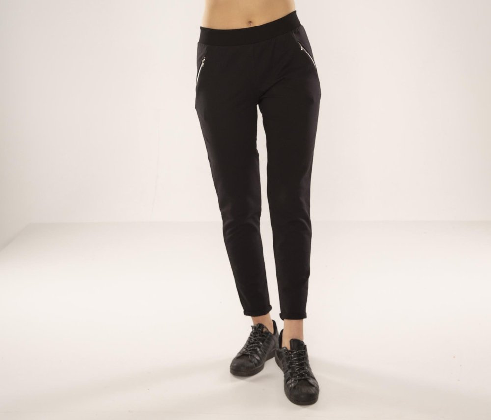 Spodnie dresowe z wysokiej jakości bawełny. W pasie wygodny ściągacz. Na wysokości bioder kieszenie zamykane na suwak. Nogawki lekko zwężane zakończone małym mankietem.