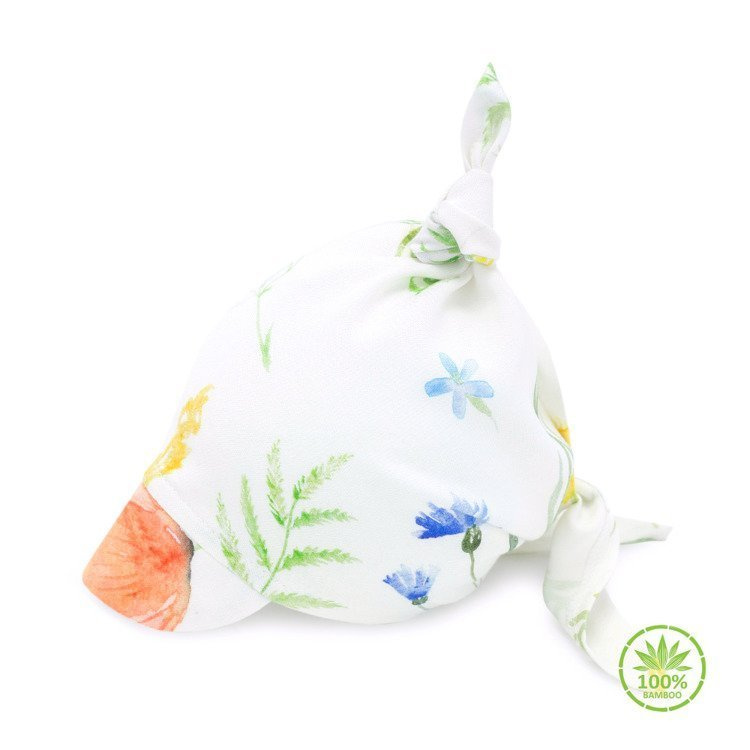 skład :100% wiskoza bambusowa najwyższej jakości. Daszek lekko usztywniony wszytą wewnątrz fizeliną. Posiada Certyfikat OEKO-TEX 100 klasa I. Wyjątkowe zalety tkanin bambusowych potwierdził Instytutu Matki i Dziecka wydając pozytywną opinię.