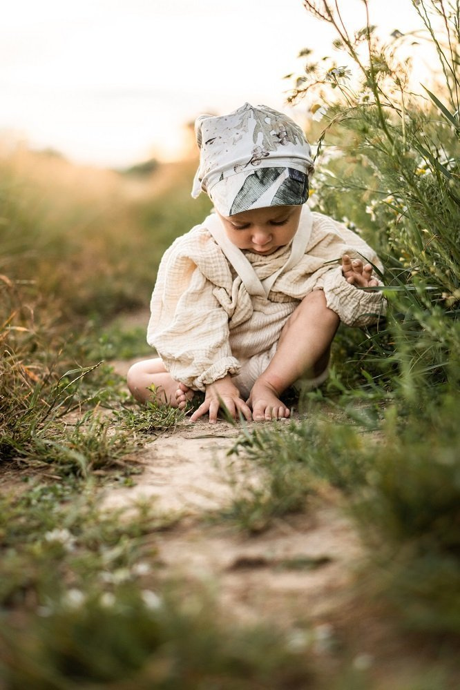 Miękka, bambusowa chustka, która świetnie chroni główkę przed wiatrem i promieniami słońca.