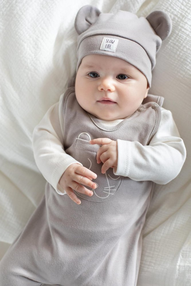 Bawełniana czapka niemowlęca dobrze przylega do główki, dzięki czemu zapewnia maluchowi ochronę uszu przed chłodem.