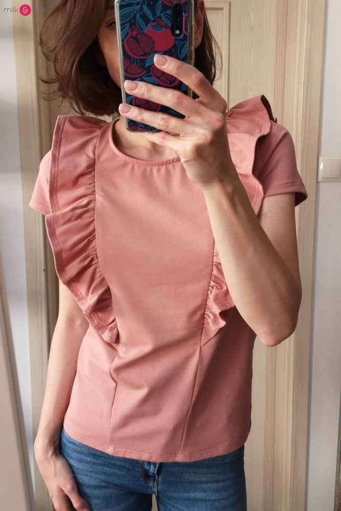 • Luźny krój bluzki, w którym będziesz się swobodnie czuć po porodzie