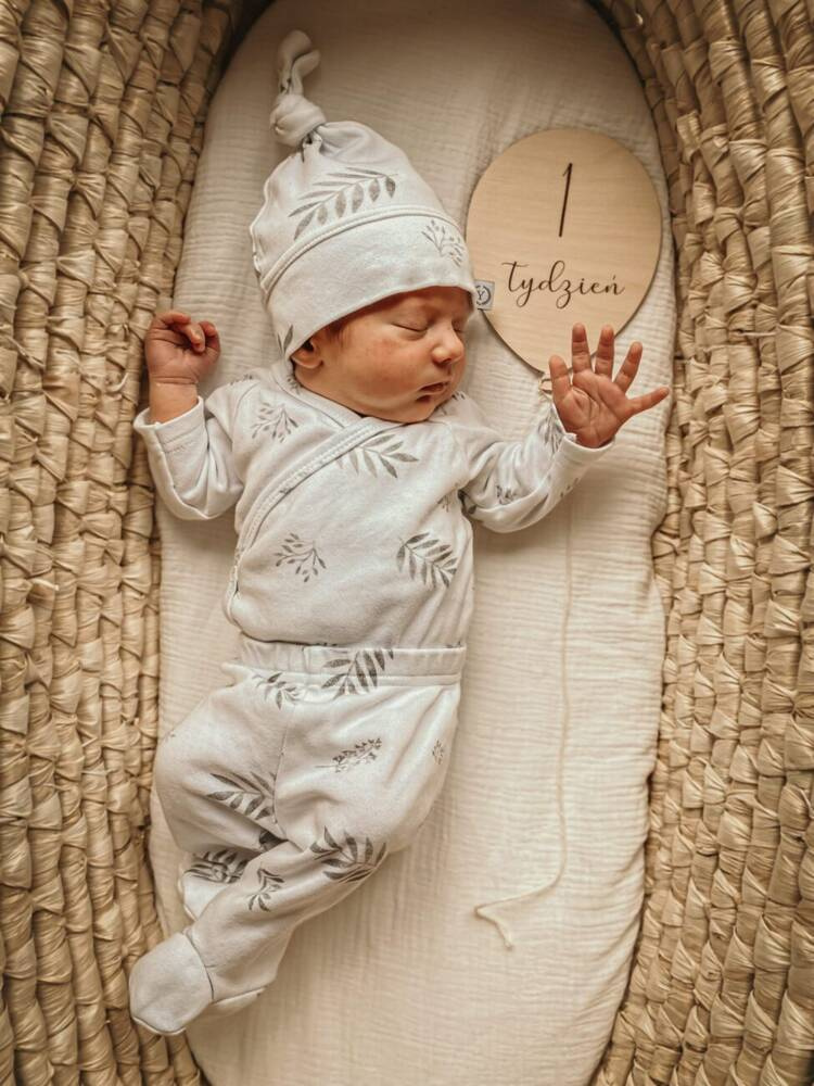 Wzorzyste półśpiochy wykonane ze 100% bawełny organicznej, bezpiecznej dla skóry dziecka.