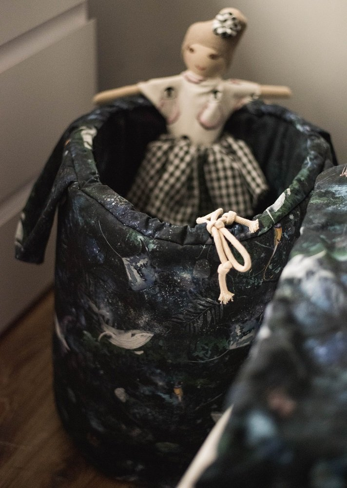 Kosz na zabawki można skompletować z różnymi produktami marki Makaszka tworząc niepowtarzalną, bajecznie kolorową aranżację pokoiku Twojego Maluszka.