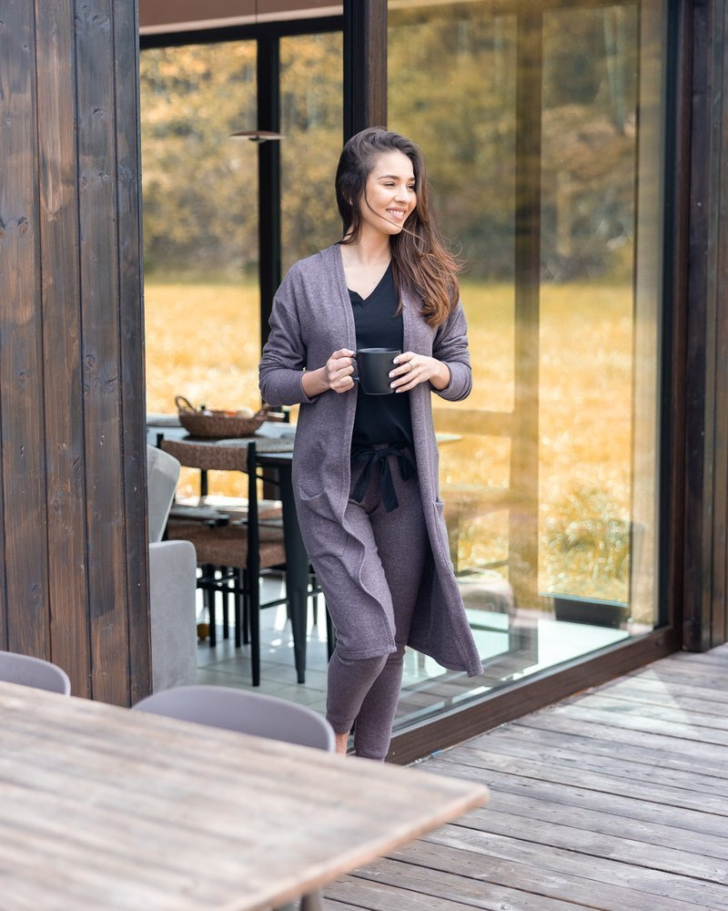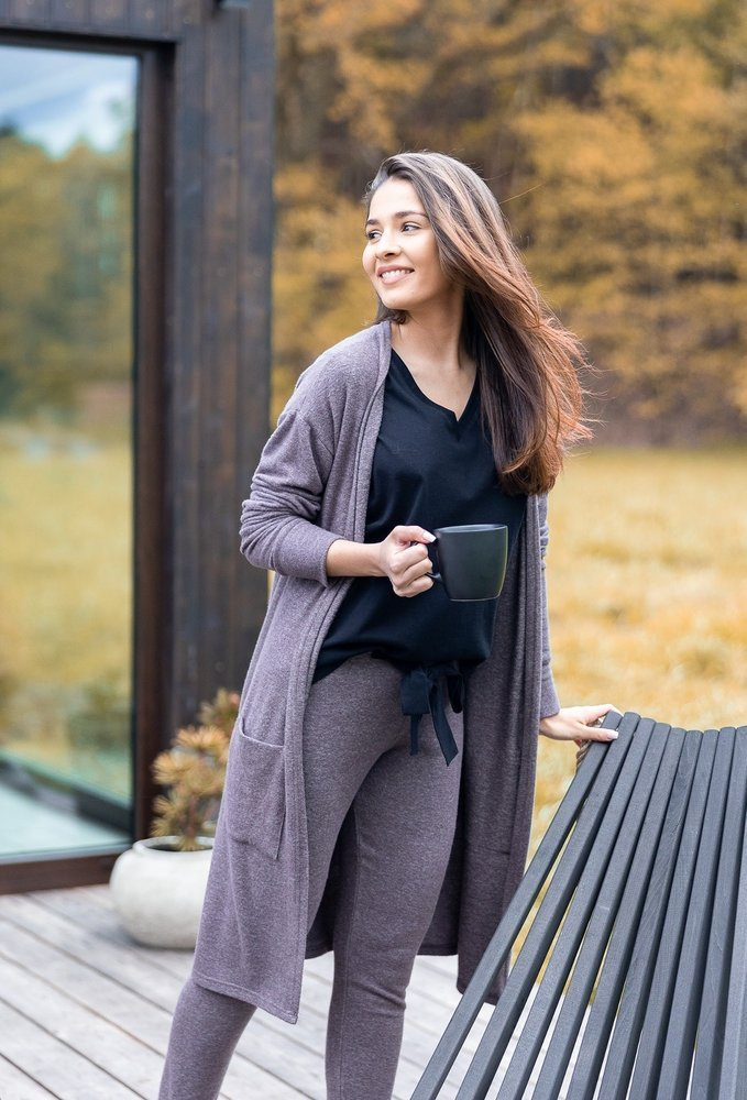 Wygodny, szlafrok damski. Wykonany z wysokiej jakości wiskozy. Model do połowy uda, o prostym kroju z długim rękawem. Na wysokości bioder posiada dwie kieszonki. Bardzo wygodny fason, delikatnie dopasowany do ciała. Spodoba się kobietom, które uwielbiają delikatność i swobodę.