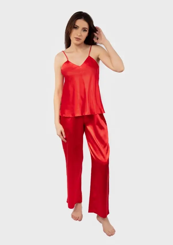 Kolorowe piżamki w serduszka to już dla Ciebie przeszłość? W T-shircie swojego ukochanego nie czujesz się seksownie, a spanie w biustonoszu jest dla Ciebie niewygodne? W takim razie może to już czas na elegancką piżamkę do spania. Komplet Iga, mimo swojej skromności i prostoty, ma w sobie to coś. Komplecik składa się z luźnej koszulki oraz długich spodni. Wykonany jest z przyjemnej w noszeniu satyny. Przód koszulki tworzy trójkątny dekolt. Jej ramiączka są cienki i mają możliwość regulowania, dzięki czemu każda kobieta może dopasować bieliznę do swoich kształtów. Komplet Iga dostępny jest w kilkunastu wersjach kolorystycznych, więc z pewnością znajdziesz idealny kolor dla siebie.