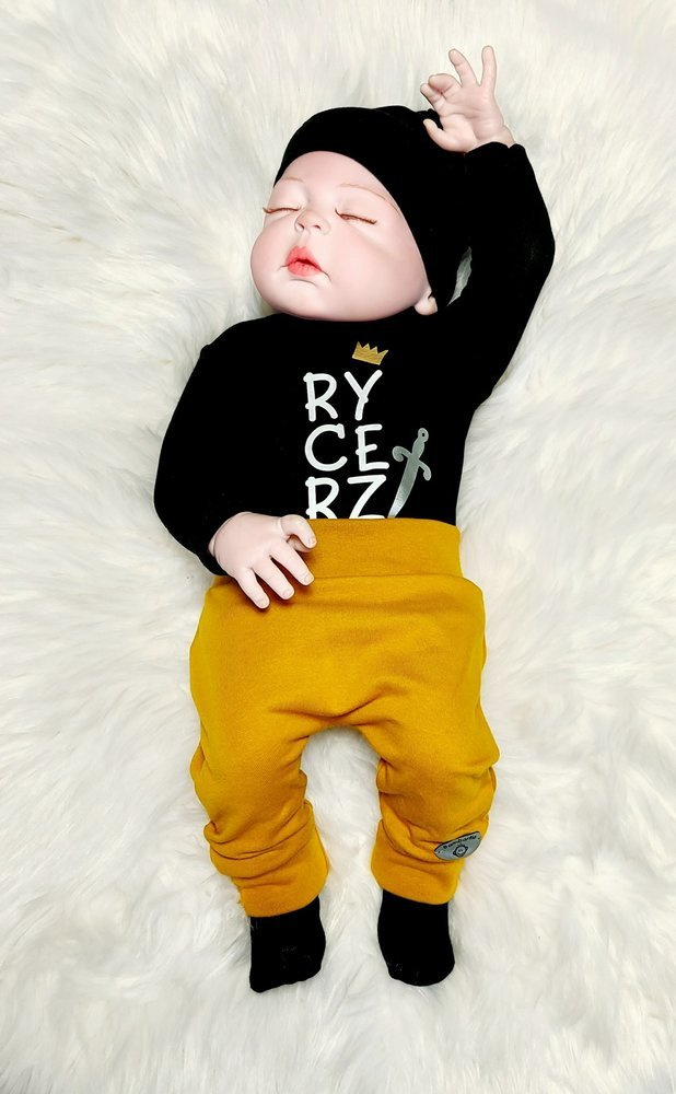 Spodnie wykonane z dresówki. W pasie wszyta jest nieuciskająca gumka, która utrzymuje ubranko na miejscu. Krój zapewnia maluchowi komfort noszenia i nie krępuje ruchów. Warto o nich pamiętać, kompletując wyprawkę dla swojego maluszka.