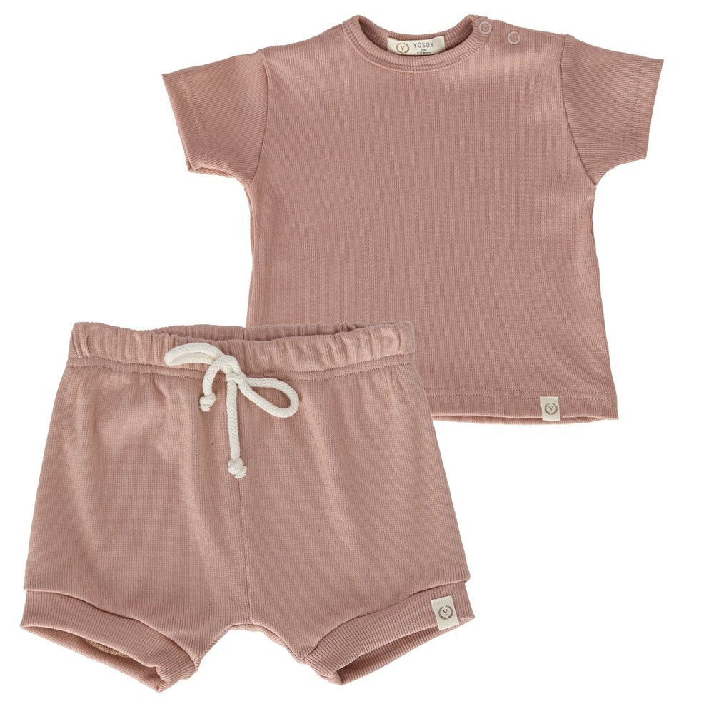 Stylowy komplet koszulka + spodenki Yosoy - brudny róż