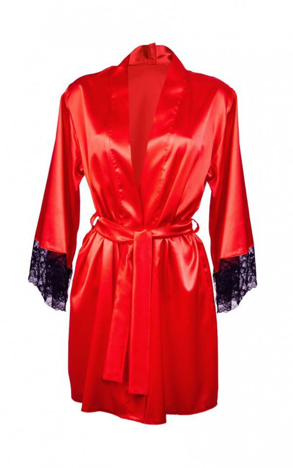 Przyjemny satynowy szlafrok dla każdej kobiety. Długie rękawy wykończone piękną koronką . Przeplatany paskiem satynowym, który idealnie dopasowuje się do sylwetki, uwydatniając atuty kobiecego ciała.