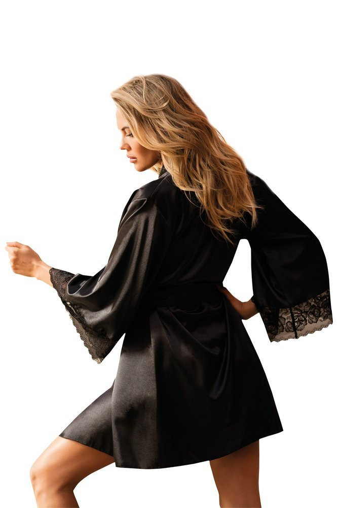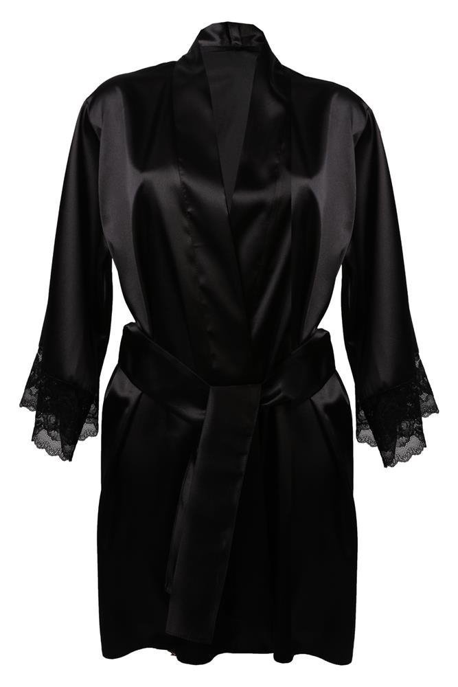 Przyjemny satynowy szlafrok dla każdej kobiety. Długie rękawy wykończone piękną koronką . Przeplatany paskiem satynowym, który idealnie dopasowuje się do sylwetki, uwydatniając atuty kobiecego ciała.