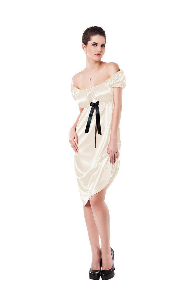 Szukasz czegoś zmysłowego, kobiecego, ale jednocześnie nieodsłaniającego zbyt wiele, aby być jeszcze bardziej tajemnicza? W takim razie koniecznie musisz zdecydować się na halkę Anabel. Ten model pozwoli Ci zalotnie odkryć ramiona dzięki dekoltowi typu hiszpanka, jednocześnie podkreślając biust dzięki gumce wszytej pod nim i uroczej kokardce, która wieńczy górę halki. Długość za kolano optycznie wysmukli Twoją sylwetkę i wydłuży nogi, budując tym sposobem idealne proporcje. Satynowe wykończenie pozwoli Ci uwolnić Twoje zmysły, a wybór kolorów umożliwi dobranie tego idealnego, dopasowanego do Twojego typu urody lub upodobań, a także okazji.