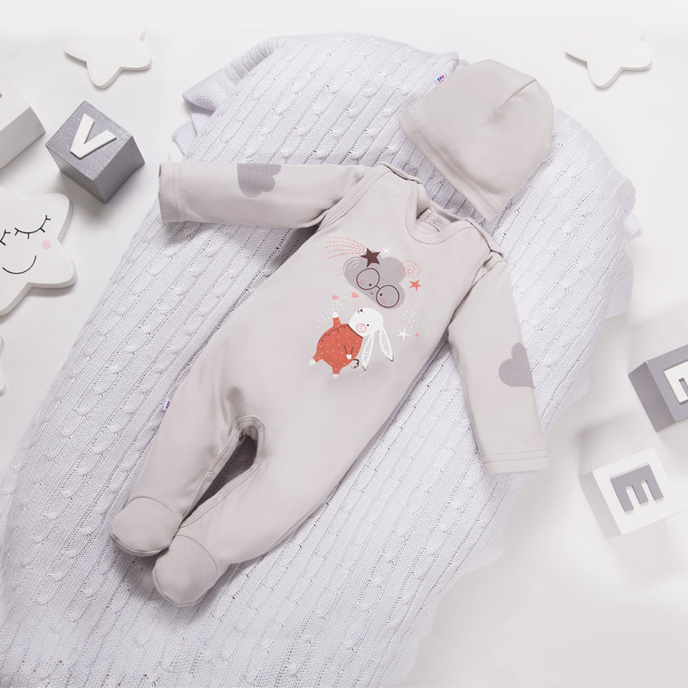 Wygodne śpioszki wykonane ze 100% bawełny.