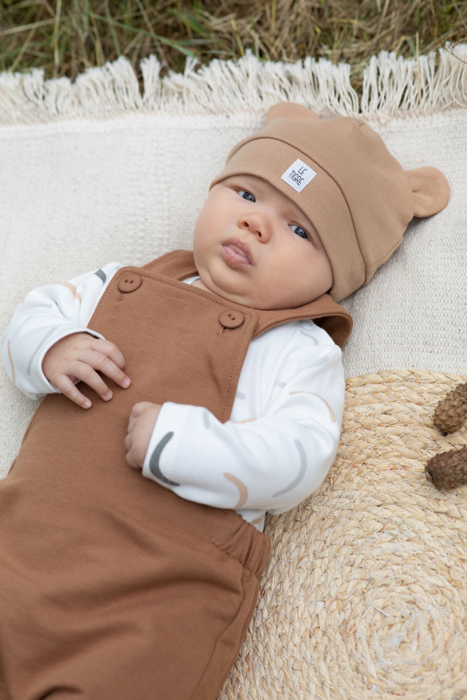 Bawełniana czapka niemowlęca dobrze przylega do główki, dzięki czemu zapewnia maluchowi ochronę uszu przed chłodem.