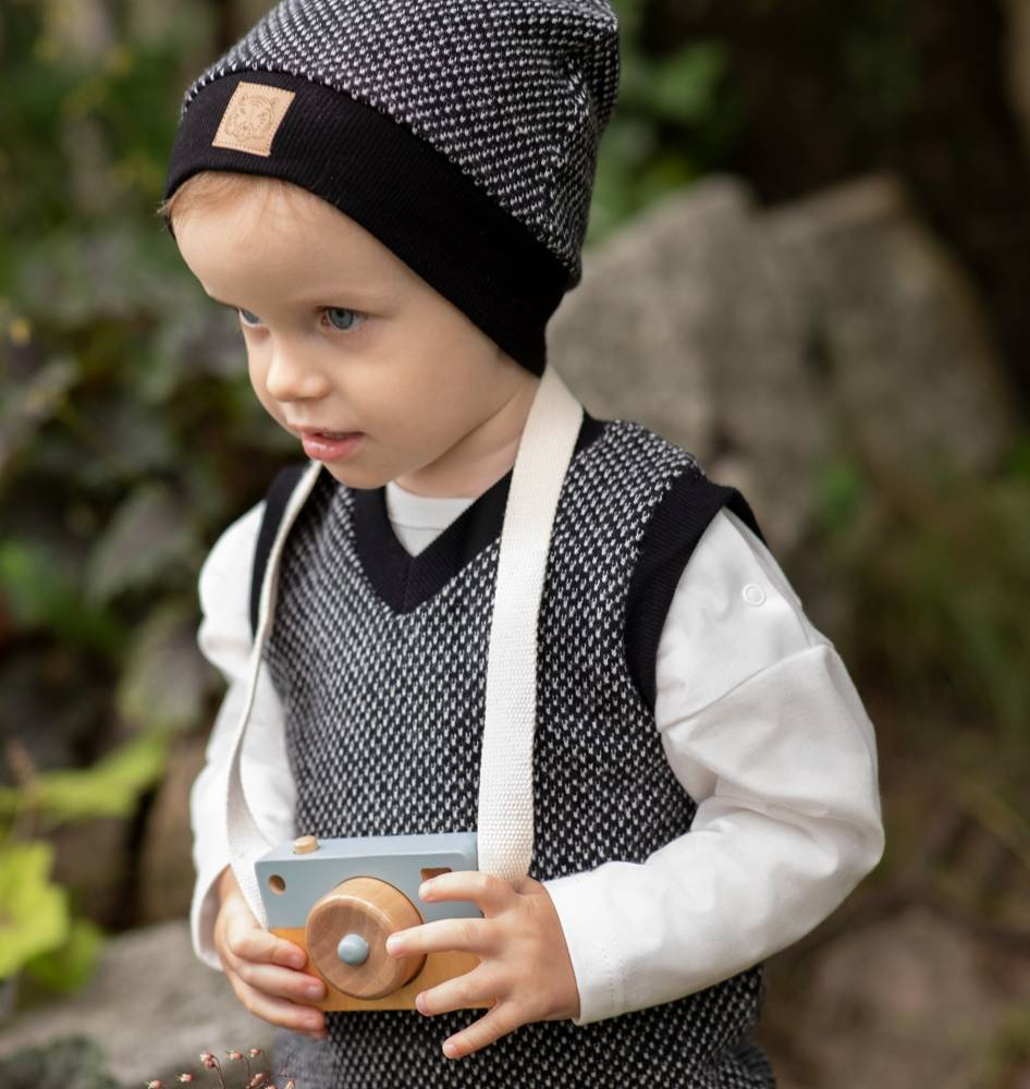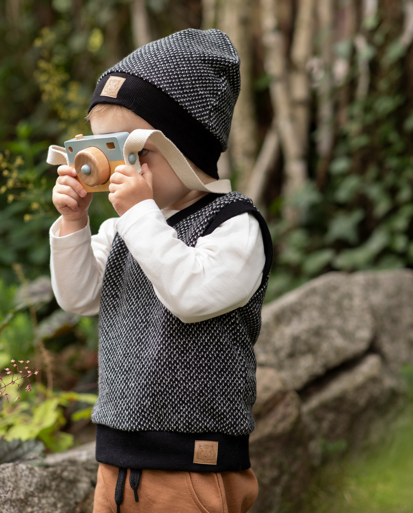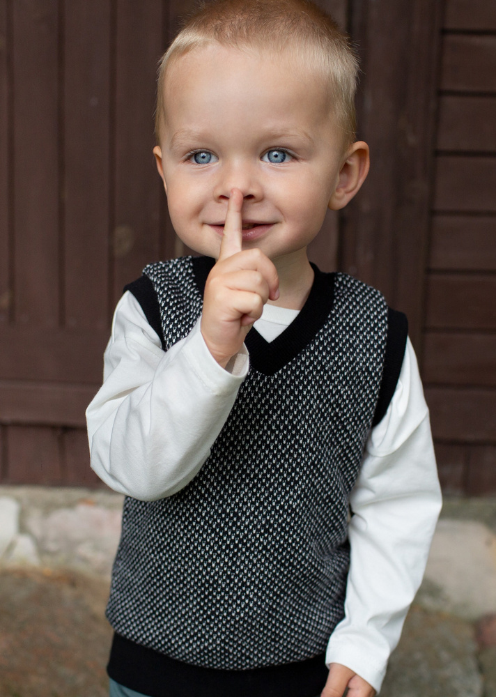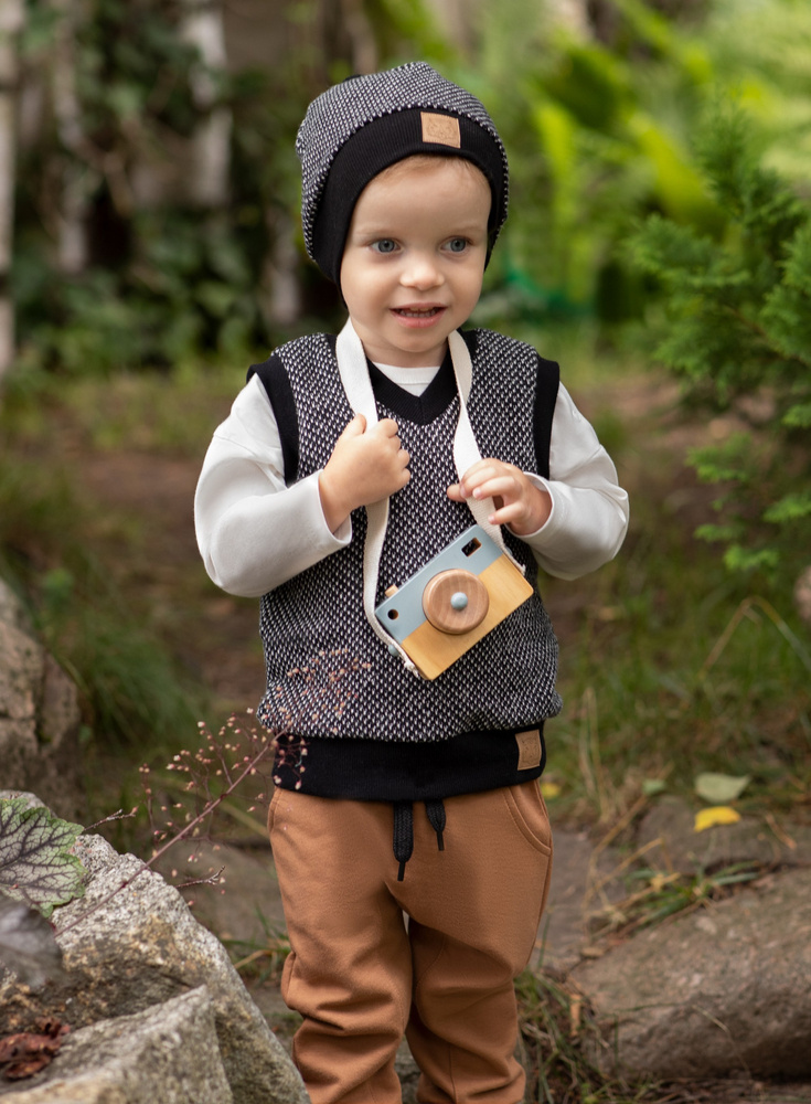 Kamizelka wykonana z bawełny, zapinana na guziki. Swobodny krój nie krępuje ruchów malucha i zapewnia mu komfort podczas codziennych aktywności.
