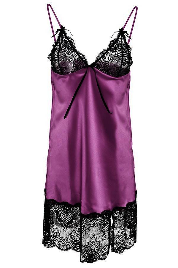 Zmysłowa satynowa haleczka, przód halki tworzą dopasowane koronkowe przejrzyste miseczki, które zmysłowo eksponują dekolt.