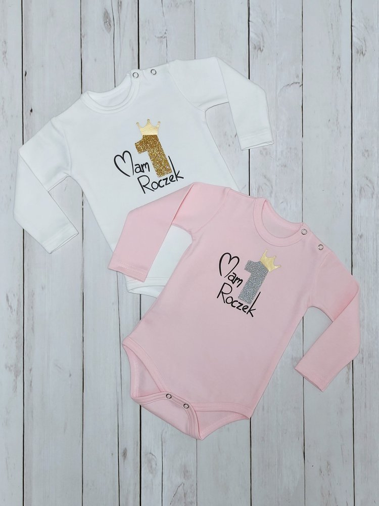 "1 Roczek" Bambarillo Body z długim rękawem- różowe