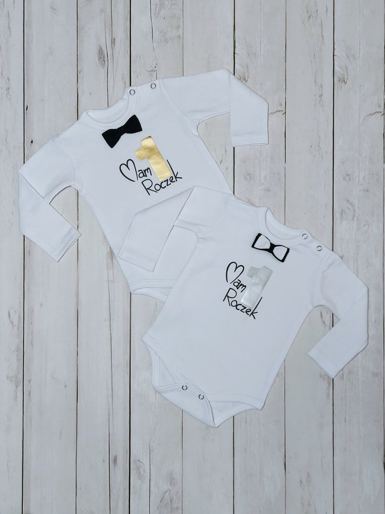 "1 Roczek" Bambarillo Body z długim rękawem- biało- srebrny