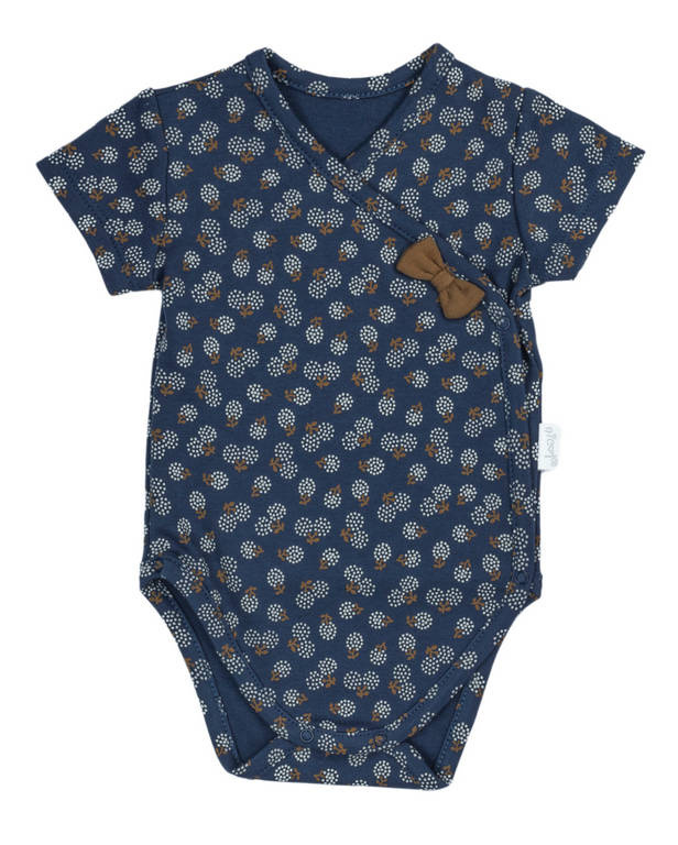 Wzorzyste body z krótkim rękawem. Posiadają ozdobny nadruk. Body są zapinane na bezpieczne, bezniklowe napki. Możliwość ich całkowitego rozpinania ułatwia ubieranie. Uszyte zostały z miękkiej bawełny 100%.