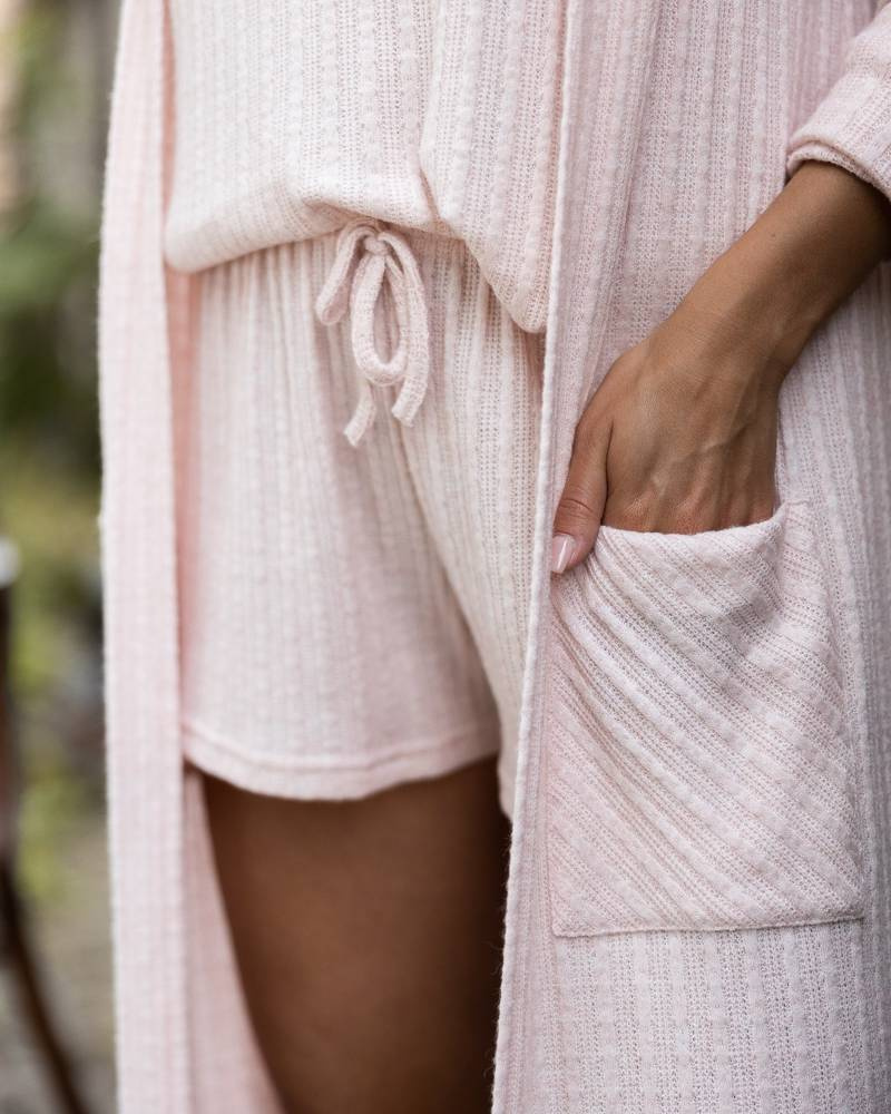 Wygodny, szlafrok damski z długim rękawem. Wykonany z wysokiej jakości wiskozy. Na wysokości bioder posiada dwie kieszonki. Bardzo wygodny fason, delikatnie dopasowany do ciała. Spodoba się kobietom, które uwielbiają delikatność i swobodę.