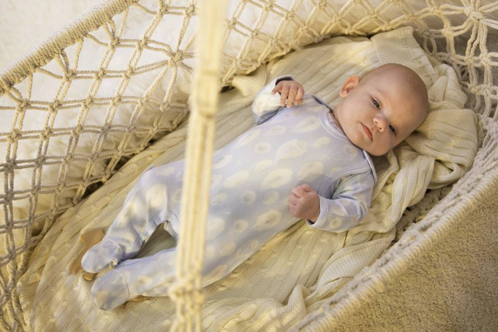 Śpioszki rozpinane są na ramionach i w kroku. To ułatwia młodym, początkującym rodzicom przewijanie malucha.