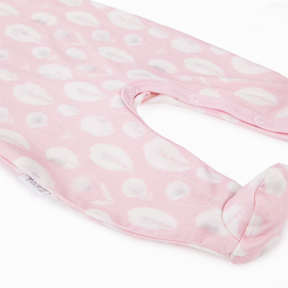 Śpioszki rozpinane są na ramionach i w kroku. To ułatwia młodym, początkującym rodzicom przewijanie malucha.