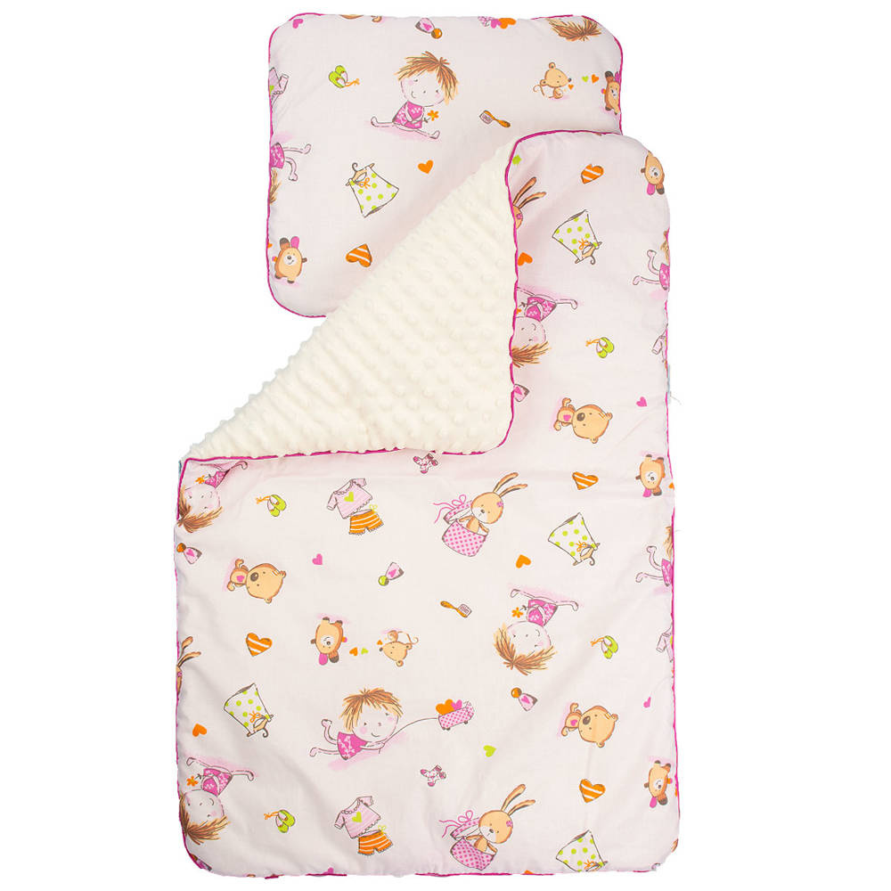 Idealny zestaw dla noworodka i niemowlaka, jako pierwszy kocyk i podusia. Doskonały do gondoli, kołyski i fotelika samochodowego.