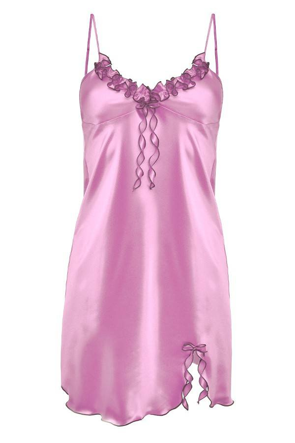 Ramiączka cienkie i regulowane. Halka ozdobna, obszyta satynową lekko pomarszczoną mereżką, falbanką. Przód dodatkowo zdobi satynowa kokardka. Dół z rozcięciem również obszyty mereżką. Halkę wykonano z najwyższej jakości delikatnej szlachetnej satyny.