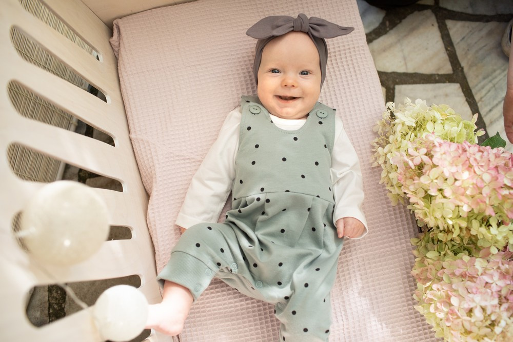 Tres Bien Pinokio Ogrodniczki w groszki - mięta druk