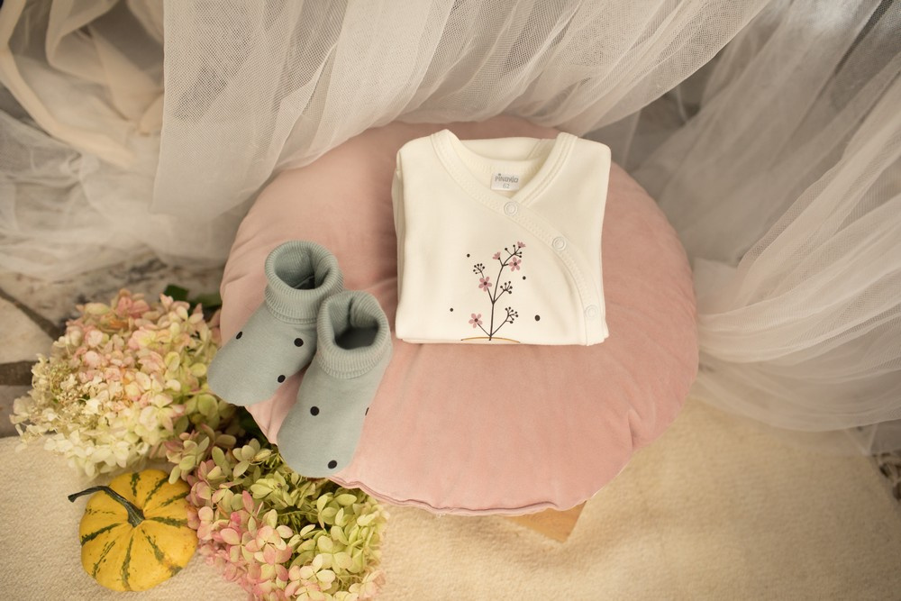 Miękkie buciki paputki niemowlęce wykonane z wysokiej jakości bawełny.
