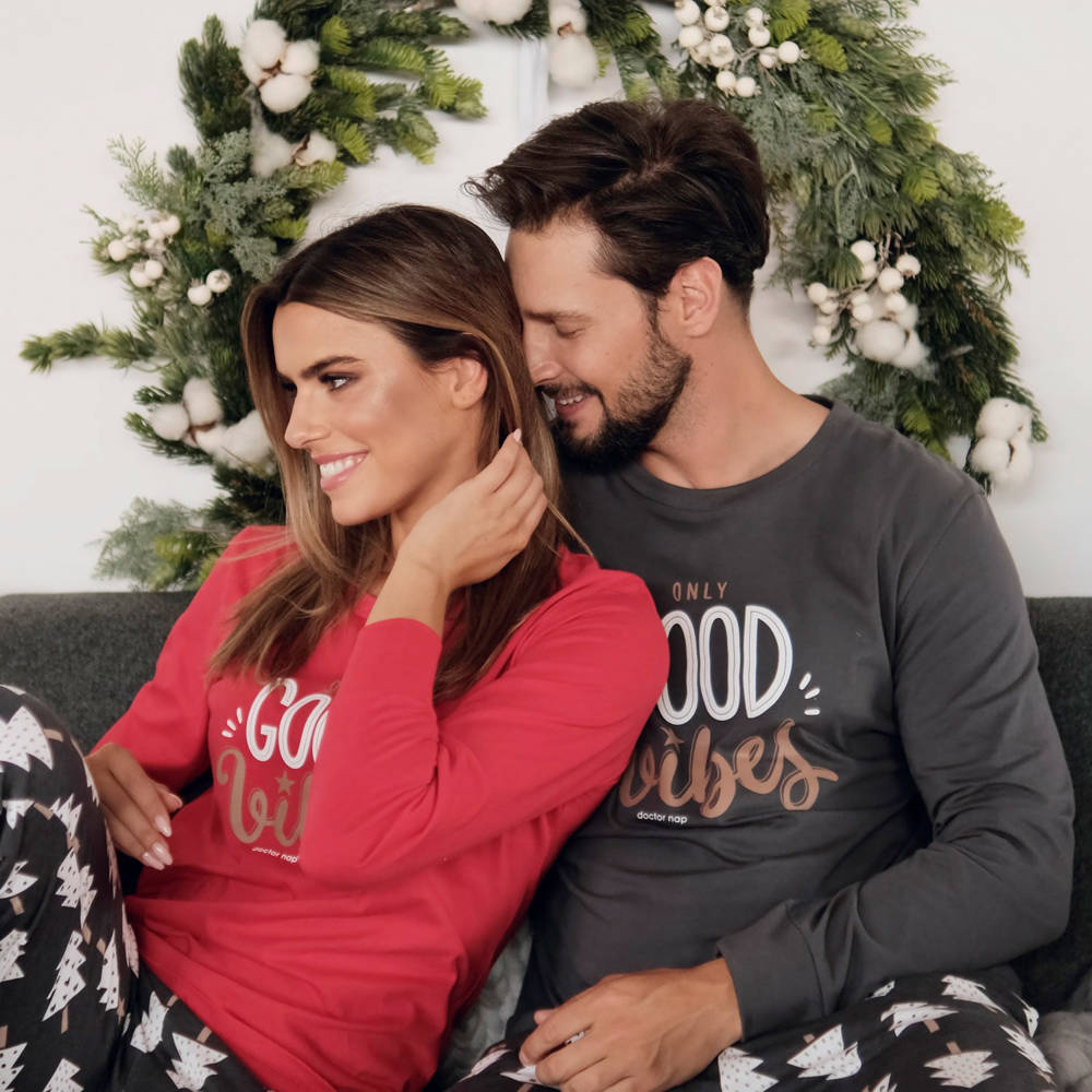 4312 "Good Vibes" Piżama Damska Doctor Nap - spruce red