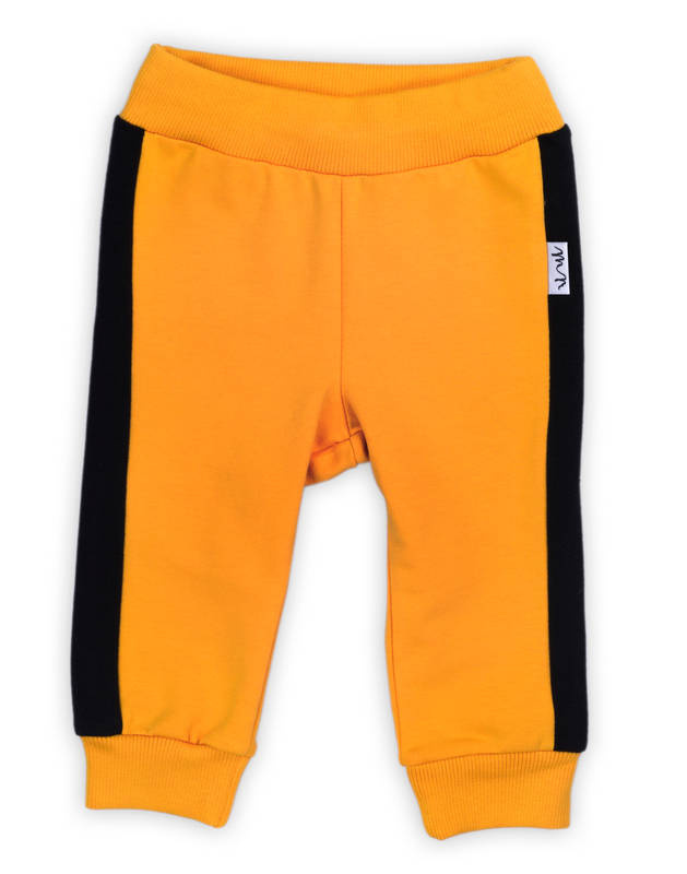 Modne spodnie wykonane z bawełny 100%, która jest całkowicie bezpieczna dla skóry dziecka. Spodnie posiadają ściągacz w pasie oraz przy nogawkach.