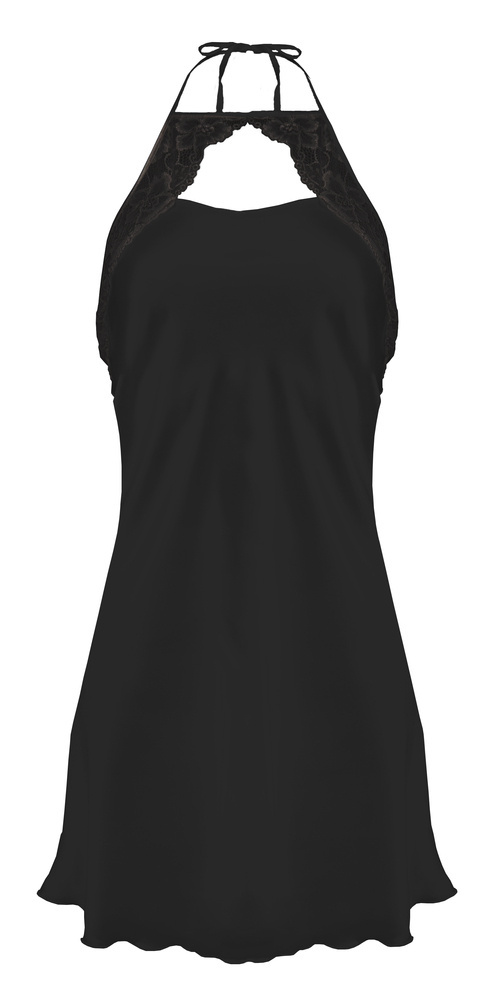Wygodna i romantyczna satynowa haleczka Irma firmy DKaren, zdobiona delikatną koronką wykończona lamówką, wiązana na szyi.