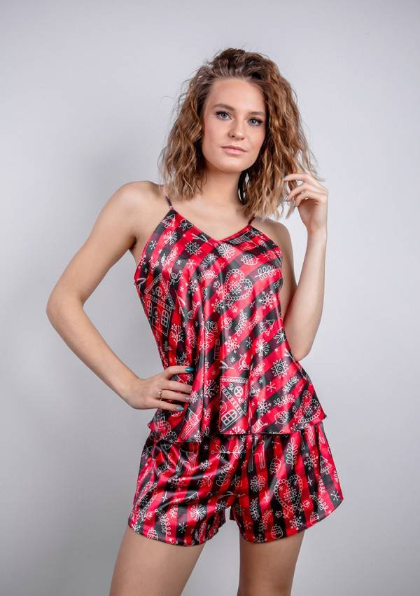 DK-KK Christmas Komplet Damski Piżama DKaren - czerwony 012