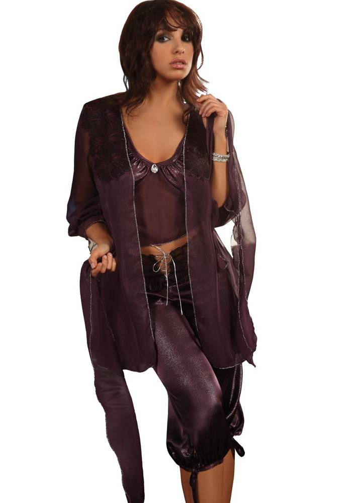 Model składa się z szlafroka, koszulki i spodni.