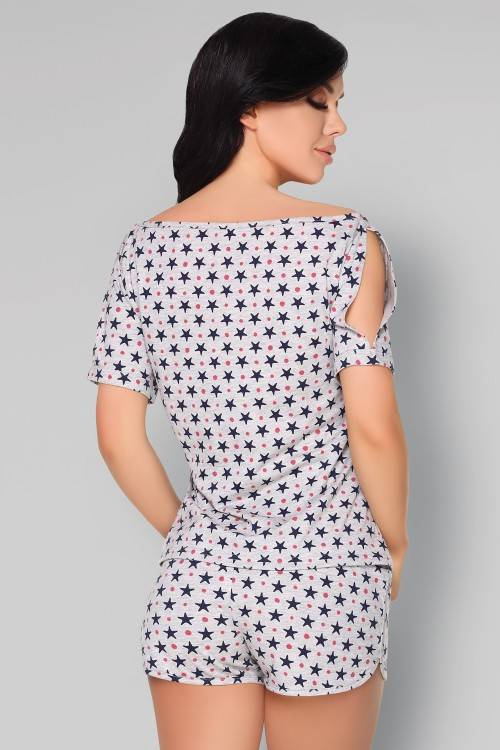 Komfortowa, bawełniana piżama to koszulka z krótkim rękawem z wycięciami oraz krótkie spodenki.