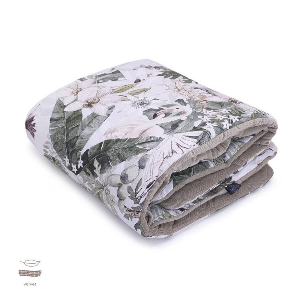Jedna strona kocyka wykonana jest z najwyższej jakości bawełny, która nie spiera się, "nie mechaci" i nie traci swoich właściwości nawet po wielokrotnym praniu, druga strona to bajecznie mięciutki Velvet elegancko przepikowany w niepowtarzalny wzór. W środku wypełniony antyalergiczną, lekką, silikonową włókniną zapewniającą ciepło maluszkowi.